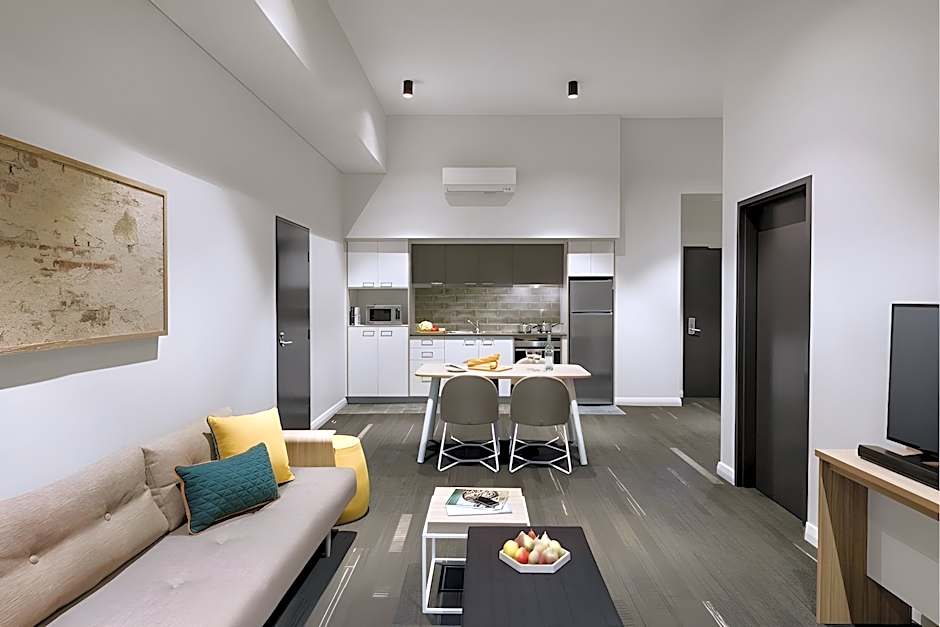 This apartment has a balcony, an iPod dock, air conditioning and washing machine.